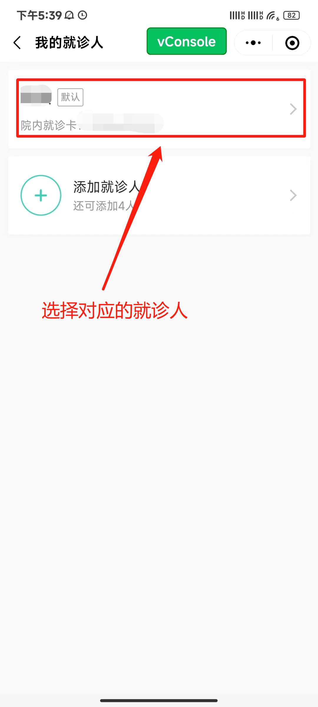 選擇對應就診人即可查看就診人信息,并管理就診卡(如只有一個就診人則無法切換默認就診人)。