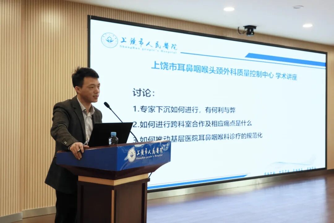 戴春富教授代表講話,他表示博士團(tuán)隊(duì)工作站的建立,是積極落實(shí)優(yōu)質(zhì)醫(yī)療資源下沉的具體實(shí)踐,可以讓復(fù)旦大學(xué)附屬眼耳鼻喉科醫(yī)院的先進(jìn)診療技術(shù)更好地在上饒落地生根,更好地為患者服務(wù),進(jìn)一步提高上饒市耳鼻咽喉科疾病救治的整體水平。