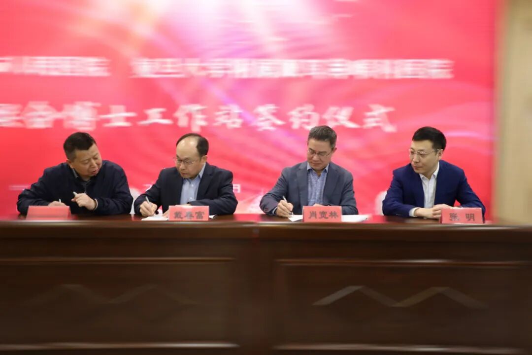 戴軍代表上饒市人民醫(yī)院與戴春富、肖寬林、張明教授簽約。
